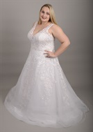 Luxusní svatební šaty zn.JARICE. Nádherné šaty, které zdobí velice pevná a výrazná krajka Ačkový střih spolu s výstřihem vytváří krásnou siluetu. Vel. 52 lze upravit na vel 50.